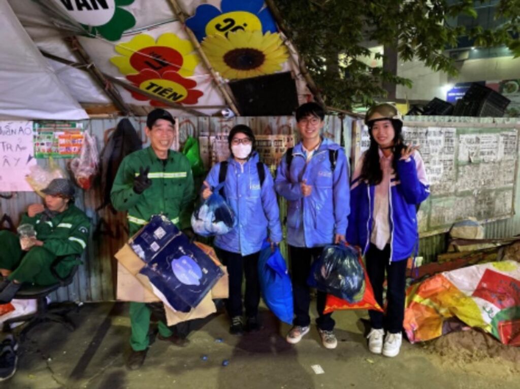 | Les membres du projet lors du don solidaire de vêtements "Gieo Xuân Hồng" aux personnes en difficulté. |