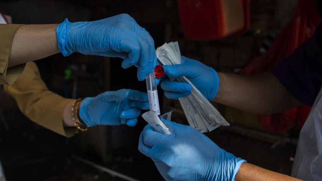 | Des vétérinaires prennent un échantillon de grippe aviaire. Photo prise à Bogor, à l'ouest de Java le 13 mars 2023. |