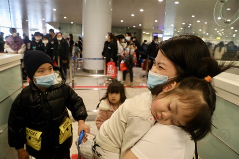 | Les citoyens vietnamiens évacués de la zone de guerre arrivent à l’aéroport international de Nôi Bài. |