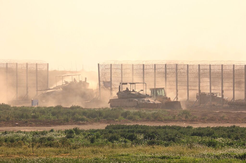 | Des blindés ont été massés à la frontière avec la bande de Gaza. |