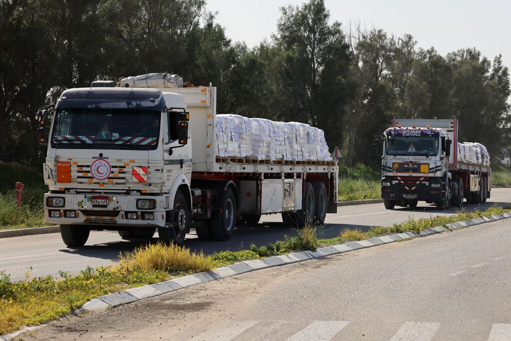 | Un convoi d'aide humanitaire est entré dans la bande de Gaza par le point de passage israélien Kerem Shalom. |