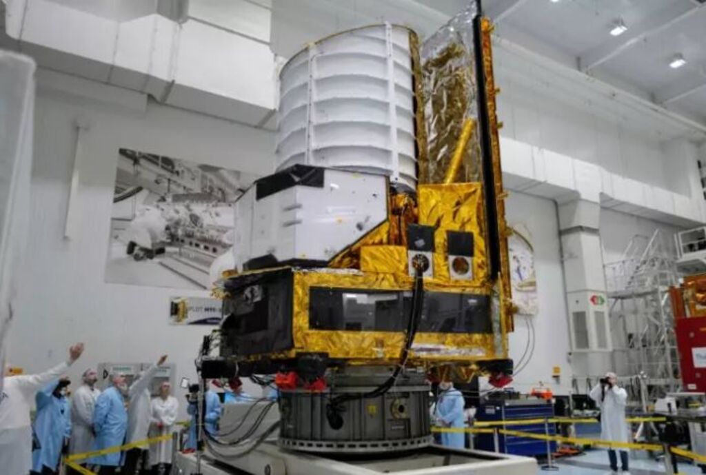 | La sonde spatiale Euclid en salle blanche à Cannes, le 21 février. |