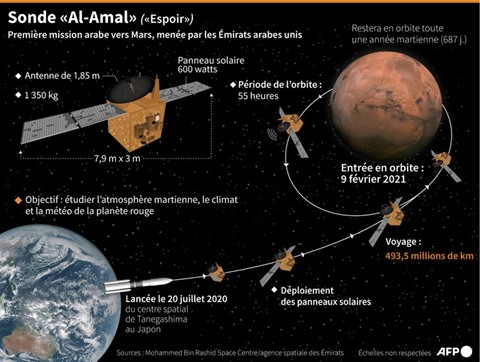 | Principales données sur la mission vers Mars de la sonde "Al-Amal". |