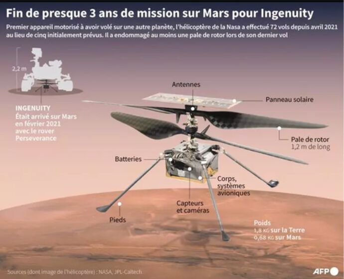 >> Après une mission historique, la NASA dit adieu à son hélicoptère sur Mars