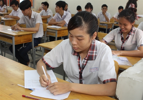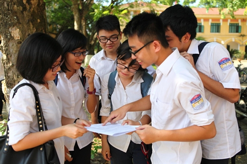 | Les élèves du lycée Chu Van An de Hanoi, après une épreuve du bac 2014. |
