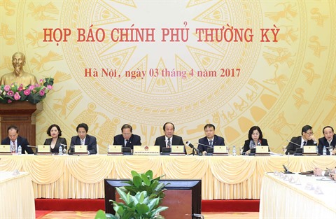 | Conférence de presse organisée après la réunion périodique de mars du gouvernement, le 3 avril à Hanoï. |