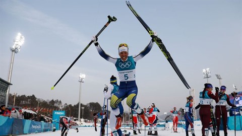 La Suédoise de 30 ans, déjà championne olympique du relais 4x5 kilomètres en 2014 à Sotchi, conservait sept secondes d'avance sur la ligne sur Marit Björgen, tandis que la Finlandaise Krista Parmakoski coiffait au sprint l'autre Suédoise Ebba Andersson pour arracher la médaille de bronze. Les deux jeunes femmes étaient séparées de seulement 8/10e de seconde sur la ligne.