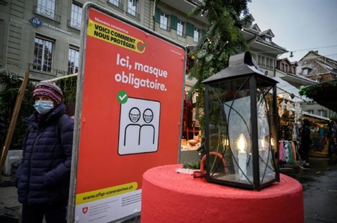 | Une affiche sur le port obligatoire du masque, le 11 décembre à Berne, en Suisse. |