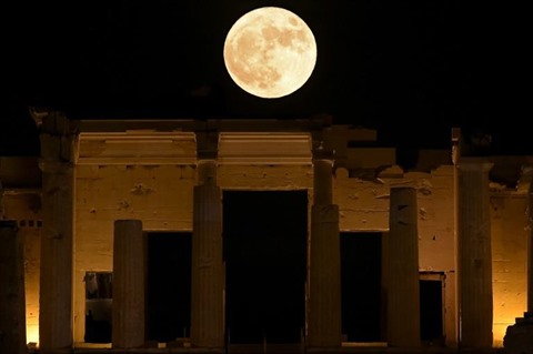 | Une "super Lune" au-dessus de l'Acropole, le 14 novembre à Athènes, en Grèce. |