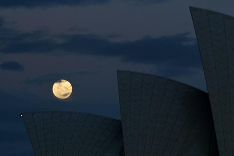 | Une "super Lune" visible au-dessus de l'Opéra de Sydney, le 14 novembre en Australie. |