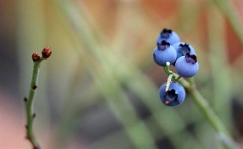 | Des baies de myrtille, l'or bleu de la province du Cap, oubliées sur une branche |