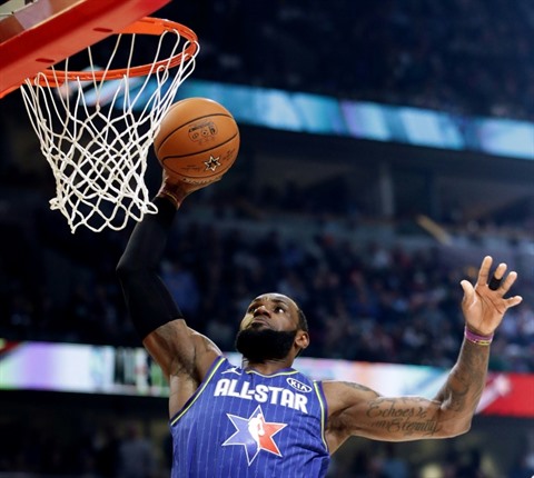 | LeBron James au dunk lors du 69e All Star Game, le 16 février à Chicago. |