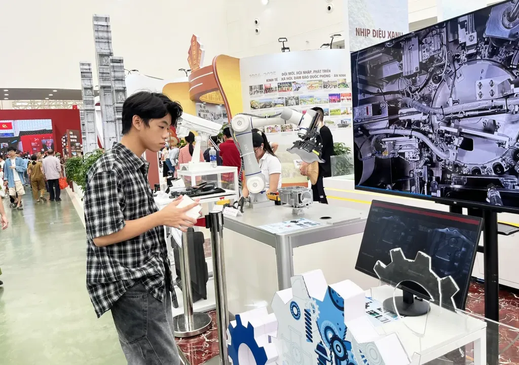 Le stand du ministère de la Défense a également offert une expérience saisissante : grâce à la réalité virtuelle, les visiteurs ont pu revivre l’épopée des chauffeurs "sans pare-brise" franchissant la piste Hô Chi Minh, ressentant une part des épreuves des soldats en temps de guerre. Le public a aussi découvert des équipements modernes de défense – drones, artillerie automotrice, moteurs de missiles Make in Vietnam - symboles des progrès réalisés dans la maîtrise des hautes technologies.