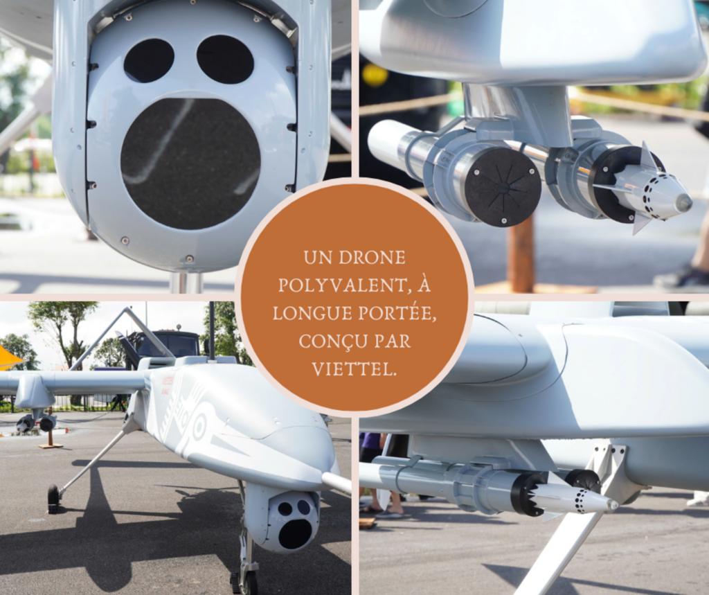 Parmi les attractions marquantes, l’espace consacré aux aéronefs sans pilote a retenu l’attention des visiteurs. En vedette figurait le drone polyvalent et longue portée développé par le Groupe Viettel de l’Industrie et des Télécommunications.