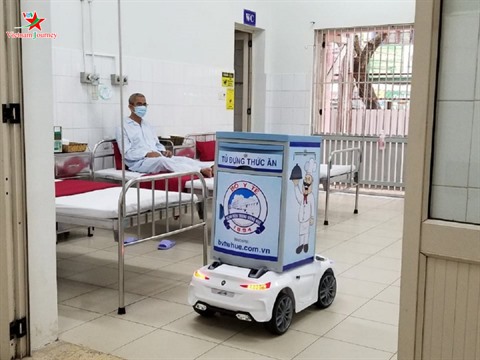 | Un robot médical de l'Hôpital central de Huê apporte de la nourriture et des médicaments dans les chambres des patients. |