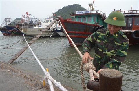 | Des bateaux de pêche de la province de Quang Ninh ont rentré au port à l'approche de la tempête tropicale Mujigae. |