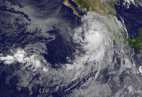 | Photo prise par un satellite de la NASA de la tempête tropicale Newton au large de la côte ouest du Mexique |