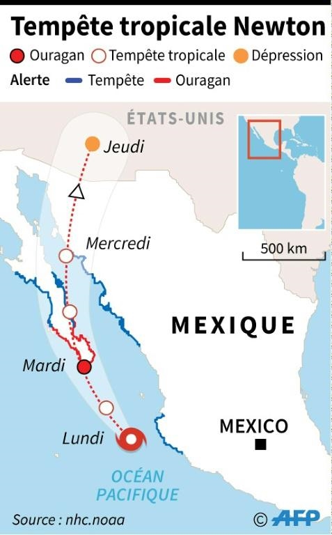 Vers 00h00 GMT, Newton se déplaçait en direction de la Basse-Californie à la vitesse de 25,7 km/h avec des vents soufflant jusqu'à 140 km/h, a indiqué le NHC.