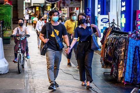 | Les habitants portent les masques dans la capitale thaïlandaise Bangkok le 8 mai. |