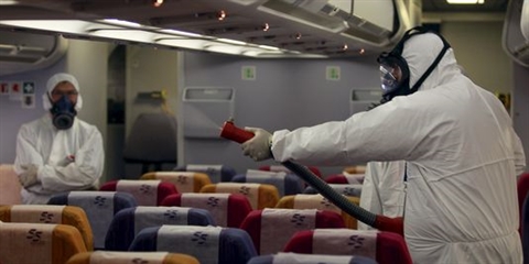 | À Bangkok, en Thaïlande, les autorités désinfectent les avions en prévention d’une éventuelle épidémie du MERS-CoV. |
