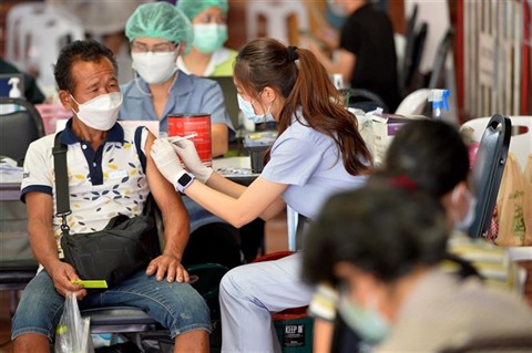 | Un habitant thaïlandais se fait vacciner contre le COVID-19 à Bangkok, le 10 janvier. |