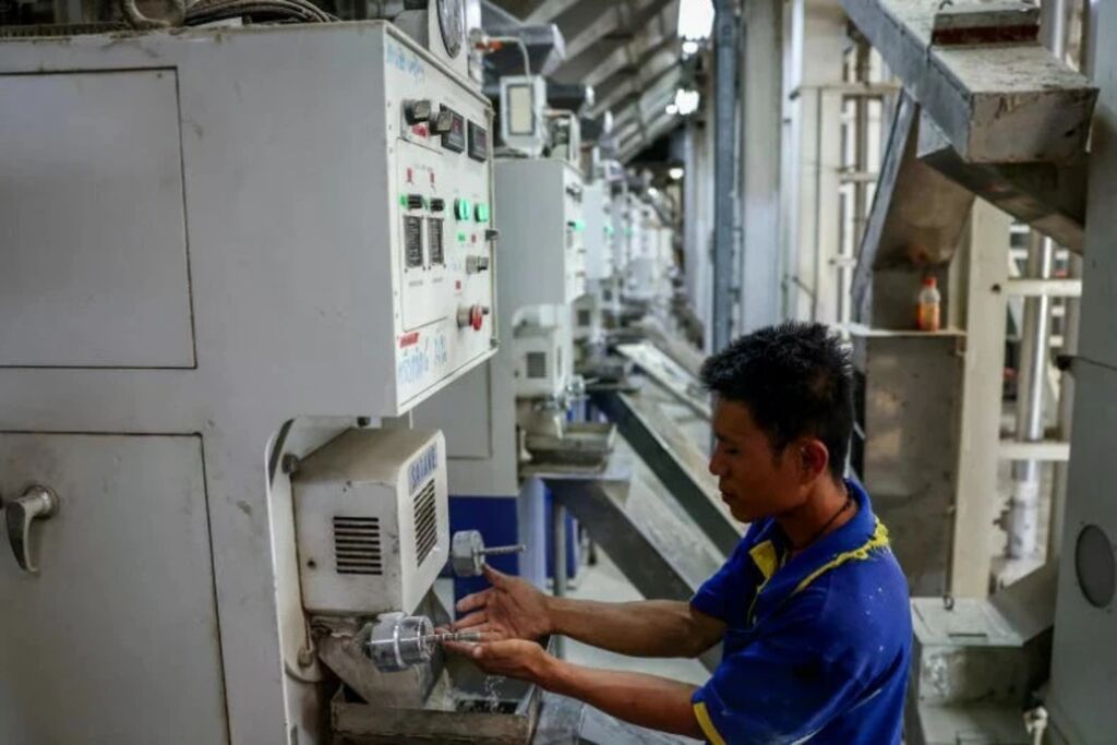 | Un homme travaille dans une rizerie de la province de Nakhon Pathom, en Thaïlande, le 18 avril. |