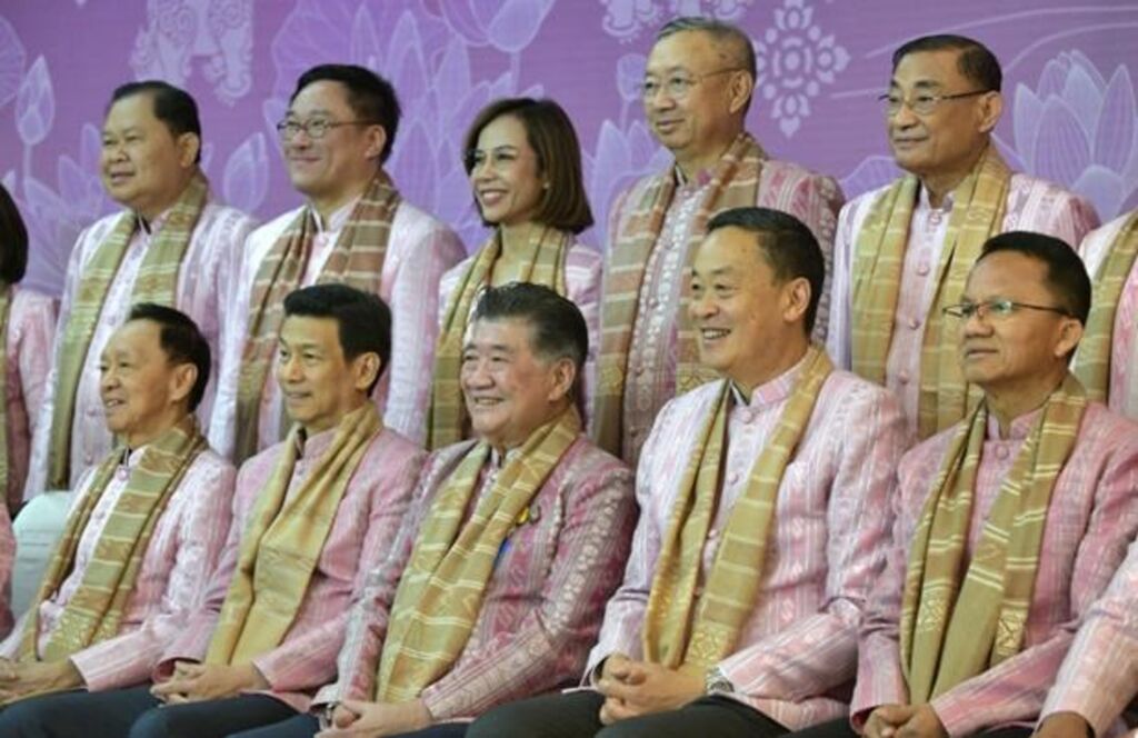 | Les ministres thaïlandais portent des tenues traditionnelles fabriquées à partir de tissus produits localement avec un motif unique lors de la réunion à Nong Bua Lamphu. |