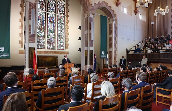 >> Le PM prononce un discours politique à l'Université Victoria de Wellington