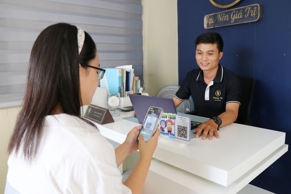 | Au vignoble Hoàng Yên dans la commune de Ninh Phuoc, province de Khánh Hòa (Centre), le paiement en ligne est facilité grâce au système de scan par code QR. |