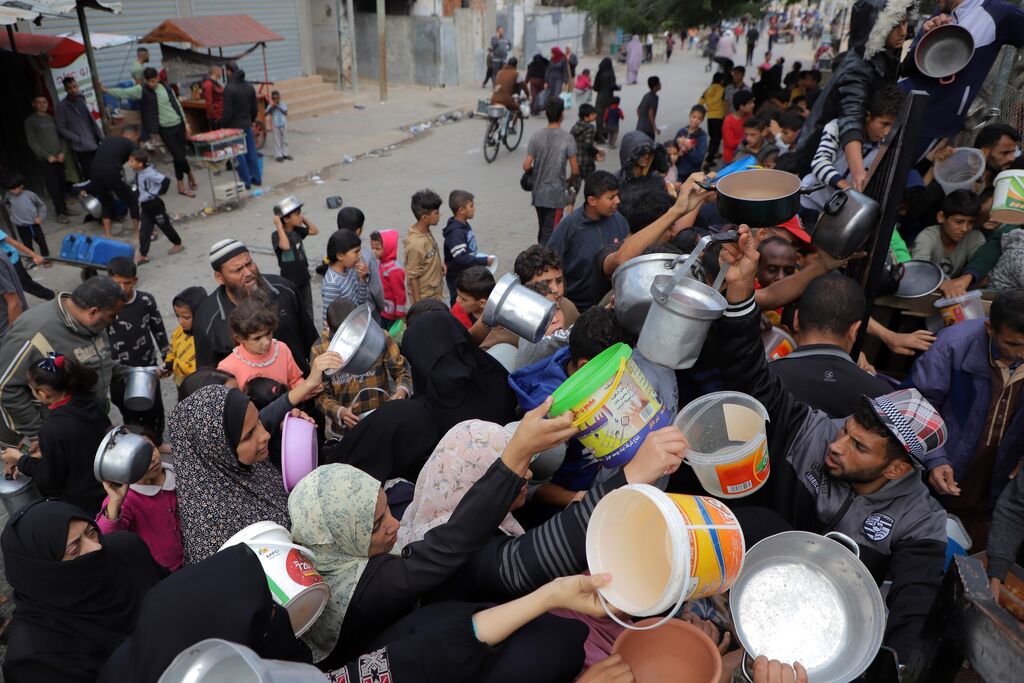 | Des Gazouis attendent à recevoir des aliments. |