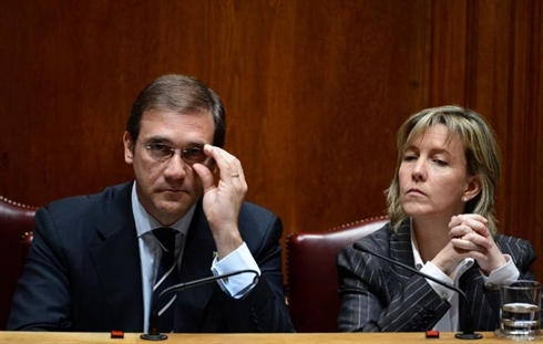 | Le Premier ministre portugais Pedro Passos Coelho et la ministre des Finances, Maria Luis Albuquerque, lors du vote du budget à Lisbonne, le 26 novembre |