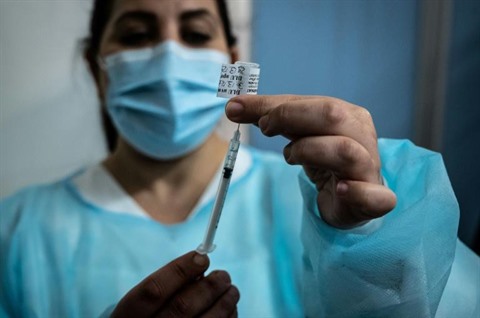 | Préparation d'une dose de vaccin Pfizer/BioNTech le 29 mars au Palais des sports de Lyon devenu centre de vaccination. |