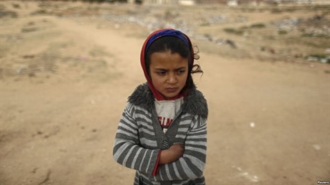 | Une fillette tunisienne dans un quartier pauvre de Kasserine, en Tunisie. |