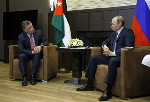 | Le président russe Vladimir Poutine (droite) lors d'un entretien avec le roi Abdallah II de Jordanie, le 24 novembre à Sotchi. |