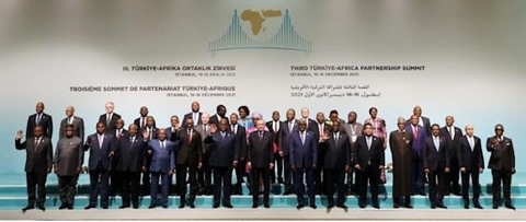 | Les participants au Sommet réunissant à l'invitation du président turc Recep Tayyip Erdogan des dirigeants africains à Istanbul, le 18 décembre. |