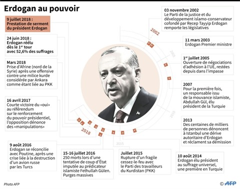 | Le président turc Recep Tayyip Erdogan passe en revue la garde d'honneur à son arrivée au Parlement, le 7 juillet 2018 à Ankara. Photo : AFP/VNA/CVN |