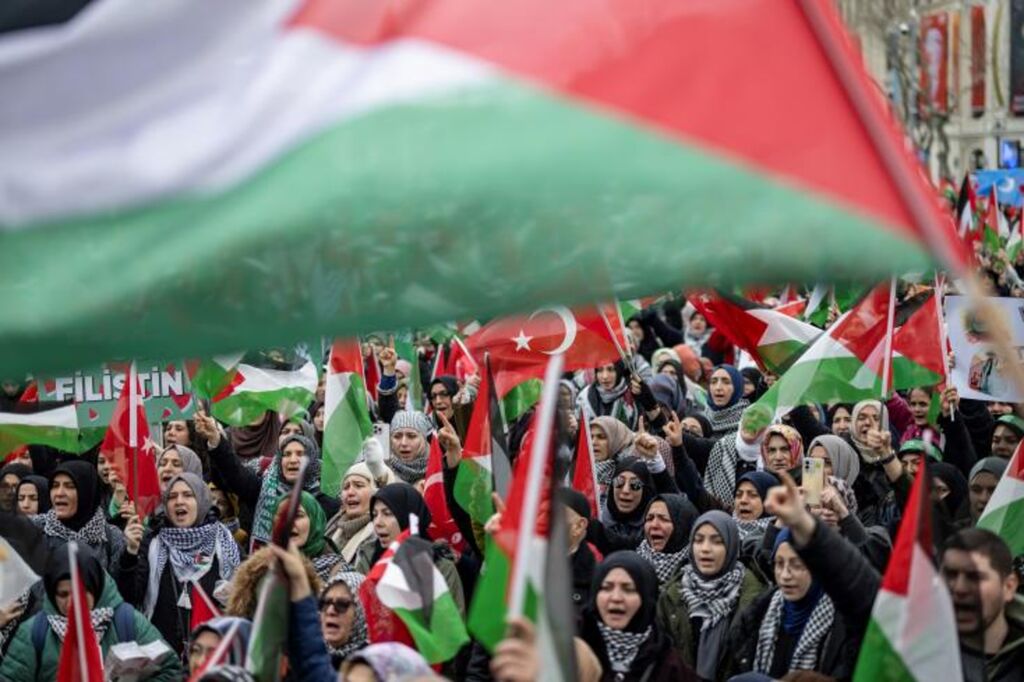 | Manifestation de soutien aux Palestiniens à Istanbul, le 17 février. |