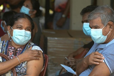 | Des patients attendent après avoir été vaccinés à Colombo (Sri Lanka), le 20 février. |