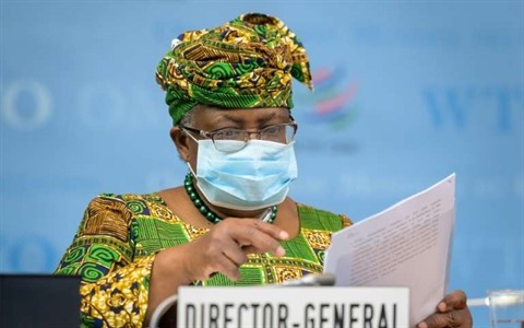 | La nouvelle directrice générale de l'OMC, Ngozi Okonjo-Iweala, lors du Conseil général de l'OMC à Genève, le 1er mars. |