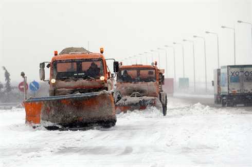 | Les chasse-neige dans une route nationale à Malgara, à 500 km au nord d’Athènes, le 7 février. |
