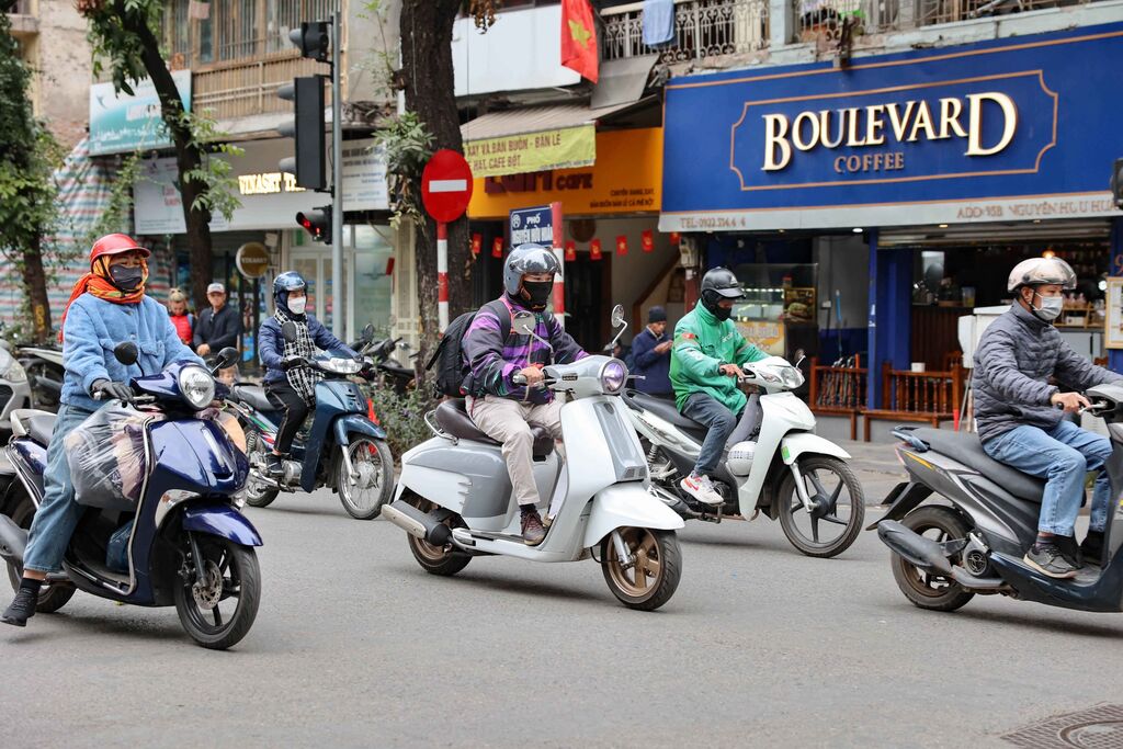 | Des gens se déplacent pour se rendre au travail par une journée froide à Hanoï. |