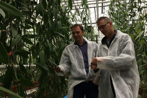 À Bleiswijk (Est), où les recherches ont été menées, les lianes des vanilliers grimpent jusqu'à plusieurs mètres de haut. Leurs longues feuilles ovales abritent les gousses qui, une fois séchées, seront tant appréciées des pâtissiers amateurs.