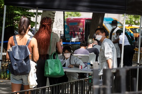 | Une file d'attente devant un centre de vaccination contre la variole du singe à New York le 17 juillet. |