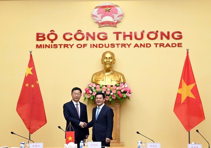 | La vice-ministre des Affaires étrangères, Nguyên Minh Hang, et Liu Ning, secrétaire du Comité du Parti communiste chinois (PCC) de la région autonome Zhuang du Guangxi. |