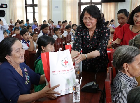 Le même jour, elle a rendu visite et offert des cadeaux du Nouvel An lunaire à des foyers démunis, enfants pauvres et victimes de l’agent orange dans la province de Tiên Giang, dans le delta du Mékong, et leur ont remis 200 de paquets de cadeaux