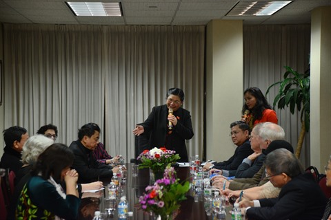 | La vice-présidente de l'Assemblée nationale vietnamienne, Tong Thi Phong (centre), travaille avec la communauté des Vietnamiens résidant à New York, le 12 février aux États-Unis. |