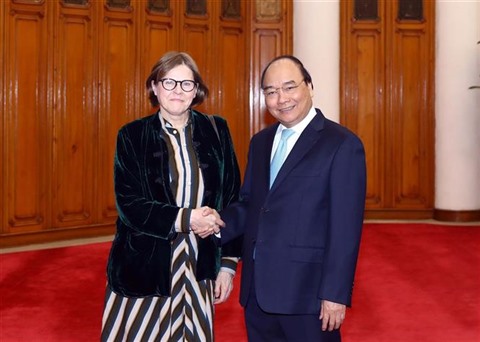 | Le Premier ministre Nguyên Xuân Phuc et la vice-présidente du Parlement européen Heidi Hautala, le 7 janvier à Hanoï. |