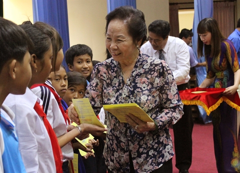 | Nguyên Thi Doan remet des bourses à des élèves brillants de familles pauvres de la province de Soc Trang, |