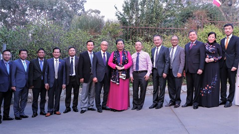 | Le 12 janvier, la vice-présidente permanente de l’Assemblée nationale, Tong Thi Phong (centre) et les représentants de la communauté vietnamienne en Australie. |