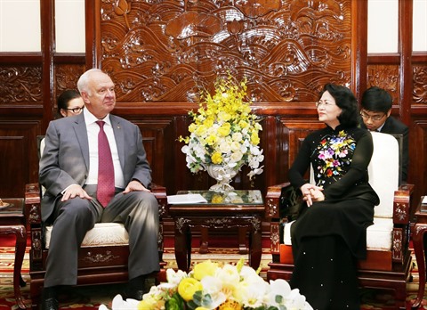 | La vice-présidente vietnamienne Dang Thi Ngoc Thinh et l'ambassadeur de Russie au Vietnam, Konstantin Vnukov. |